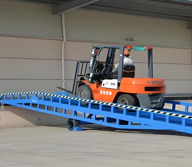 移动式登车桥是与叉车配合使用的货物装卸辅助设备,以下是对其详细介绍: